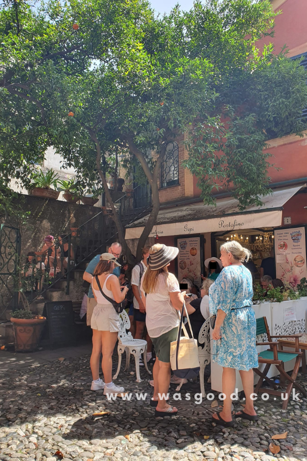 Our delightful day in Portofino began with a refreshing treat at Gelateria Gepi Portofino (and we couldn’t resist returning for more before leaving in the evening too). Tucked away in a cosy corner away from the crowded port, this small gelateria offered a charming outdoor seating area with a handful of tables.