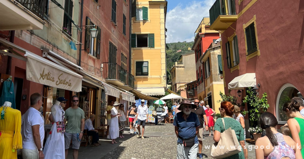 As we stepped off the boat, we were immediately drawn to the captivating charm of Portofino. The town’s pastel buildings nestled against the hillsides, offering stunning views of the serene Ligurian Sea. Portofino’s small harbour was packed with elegant sailboats and luxurious yachts, creating a picturesque scene of the Italian Riviera.
