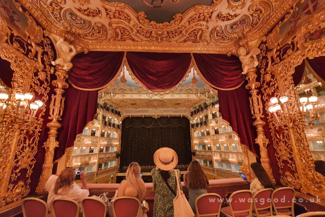 Next, we made our way to Teatro La Fenice, a stunning theater and one of the most historic opera houses in Venice, Italy. It’s often hailed as “one of the most famous and renowned landmarks in the history of Italian theatre” and opera as a whole, according to Wikipedia. We took a tour, complete with a free audio guide, which really brought the history to life. One day, I hope to return to see a concert there – it would be a dream come true.