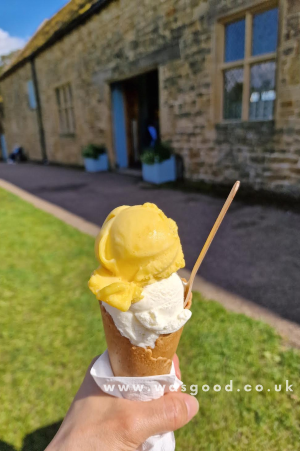 After a leisurely exploration of the two halls, we decided to queue to get ice cream from the Kiosk. It wasn’t just ice cream, but Bluebell Dairy Artisan Ice Cream which is very well known in the Derbyshire area. The queue was quite long as the weather was nice, however we can confirm the wait was worthwhile. I opted for Mango and Double Cream Vanilla (£4.00). They were both delicious but my favourite was Mango.